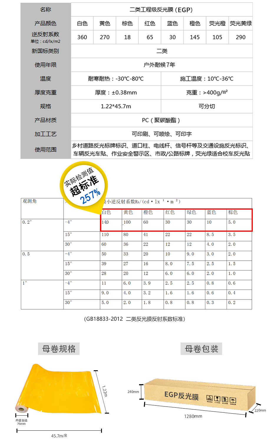 高亮反光,性能穩定,白色反光亮度高于360cd/lx/cm2